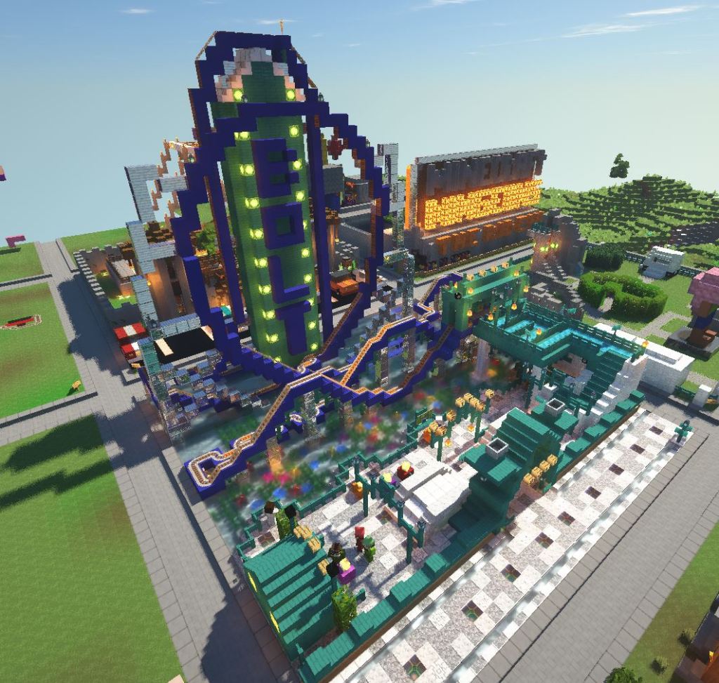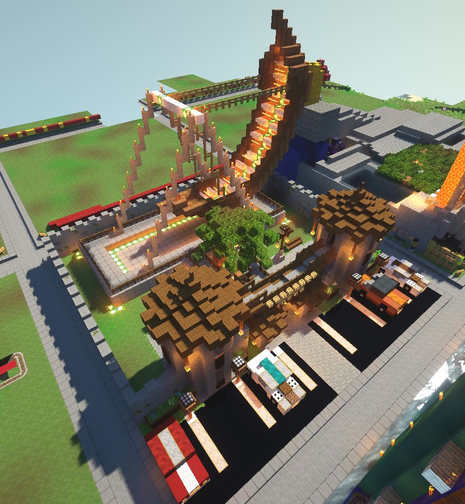 Frankie went with a brilliant looking Nether style build, complete with a rollercoaster, bouncy castle, water slide and food vendors!
