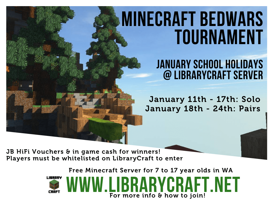 School holidays are not far away, which means BedWars Tournament time! There will be two BedWars tournaments during the January School Holidays: