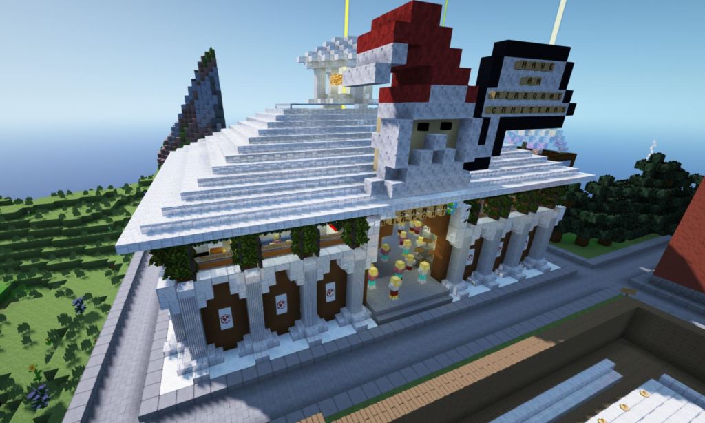 Collie went to town creating a beautiful looking town centre, complete with an ice skating rink, a couple of house façades, Christmas tree, presents, and Santa and the reindeer flying overhead. There is so much detail in here, it’s stunning.
