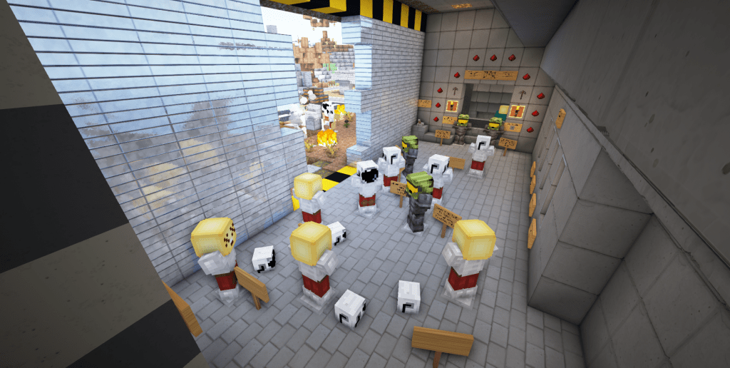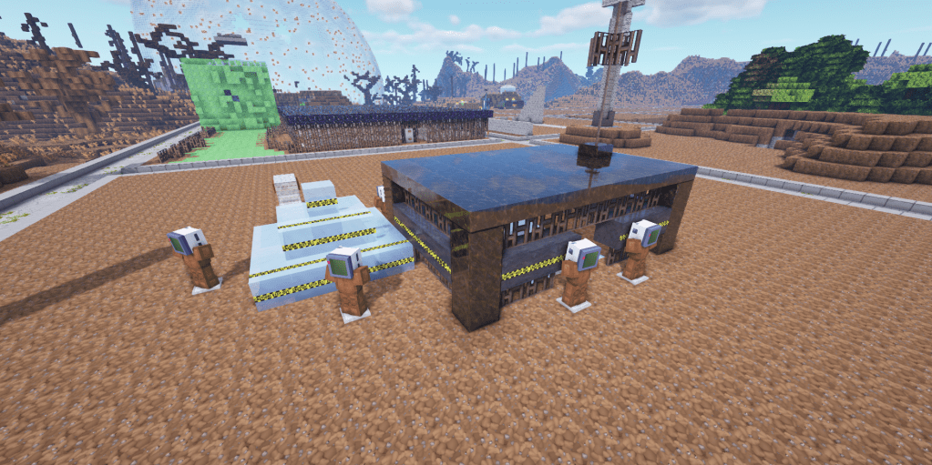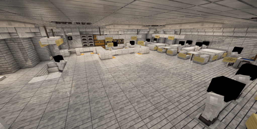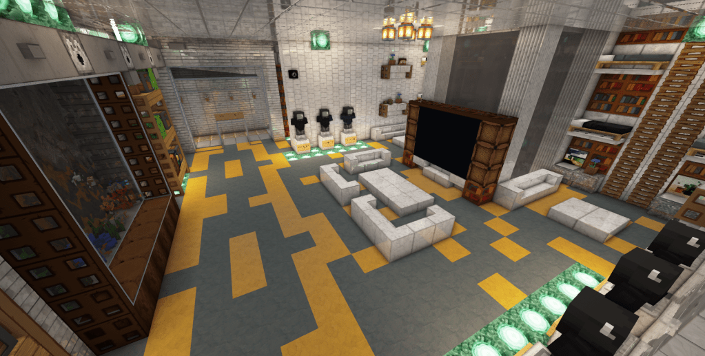 Fresh after a slight username tweak, Bacon has built a smoking underground bunker in what seems to be a dead forest. I particularly like the large pipes leading into the textured green lake. Inside there’s iron blocks galore (which looks great with my textures), and a very clinical and orderly build, with much more below.
