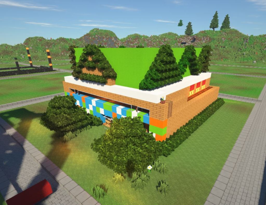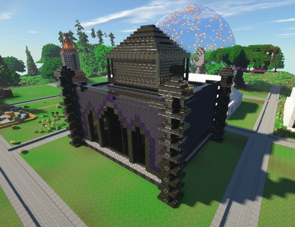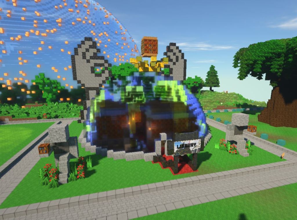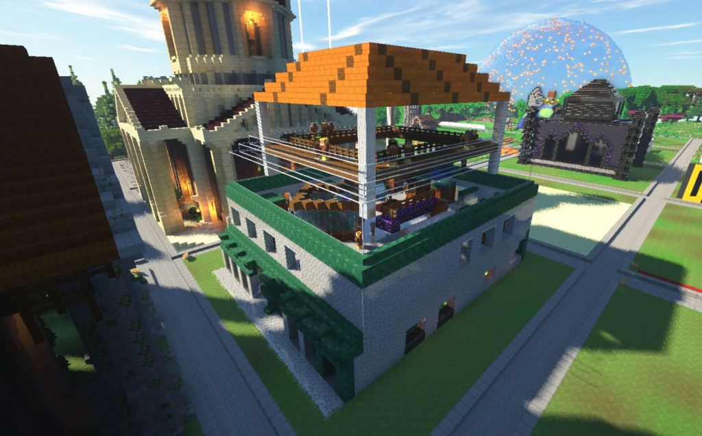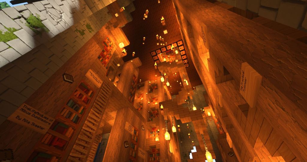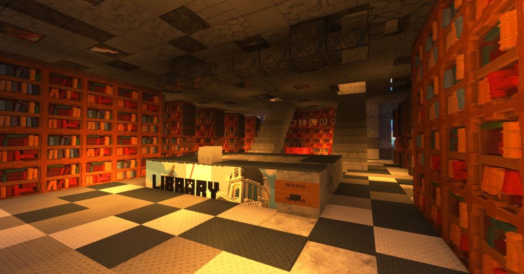 Formerly known as B4C0N and (confusingly) SpeedCat995, bforkcan has gone for a more rugged stone look with this build, reminiscent of a traditional library. It’s really well thought out! A very nice use of the poster sign too. 🙂