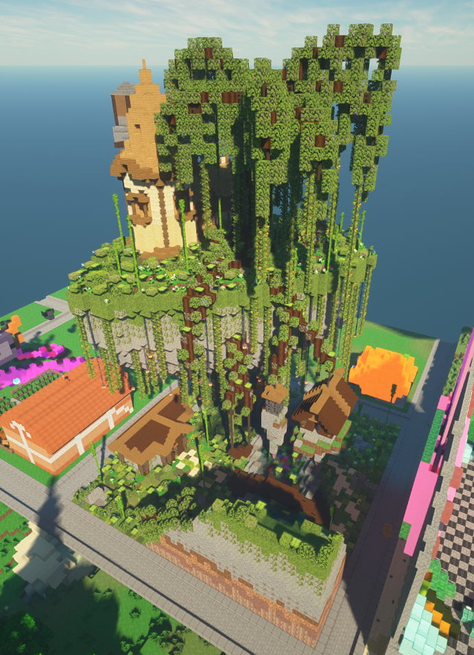 Going high as well, this build has one of the most stunning trees I’ve ever seen. The hanging roots coming down are incredible.