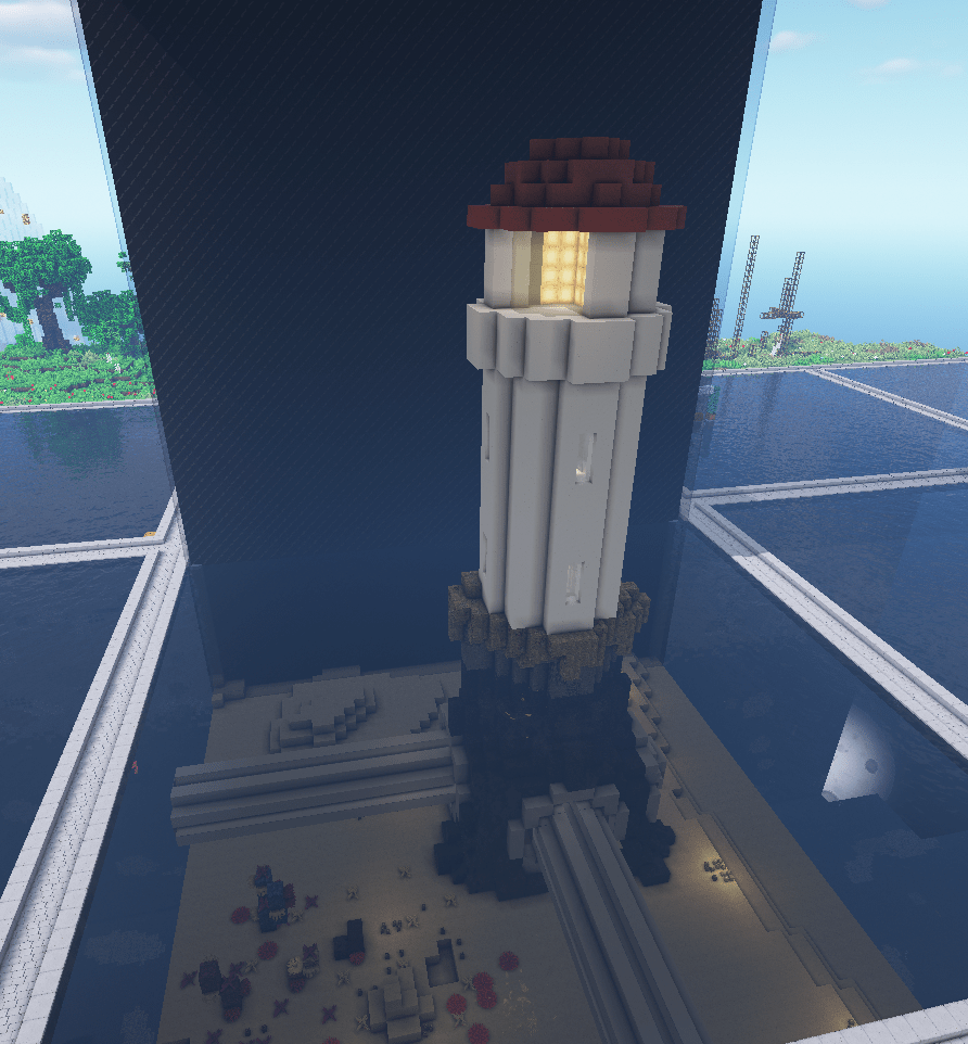 Straw decided to build a lonely lighthouse with some tunnels under the water. I really like the simplicity of this one. Straw also snatched third place with just five extra points!