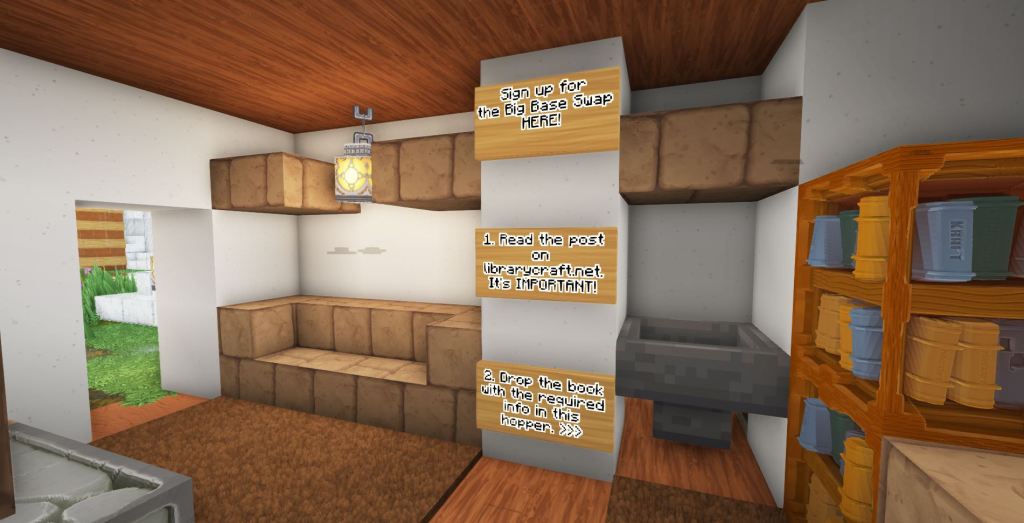 That’s right! This was a heap of fun last time we ran it, so we’ve decided to do it again. The LibraryCraft Big Base Swap is an opt-in base swap. Players will be assigned a different existing base on 119Survival to modify and call their home for a while.