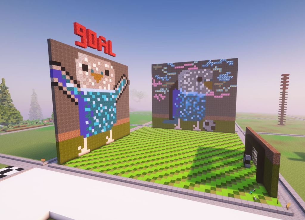Ruby went with a combination of pixel art and building, with her birds playing soccer! I love it!