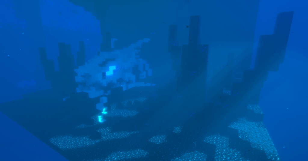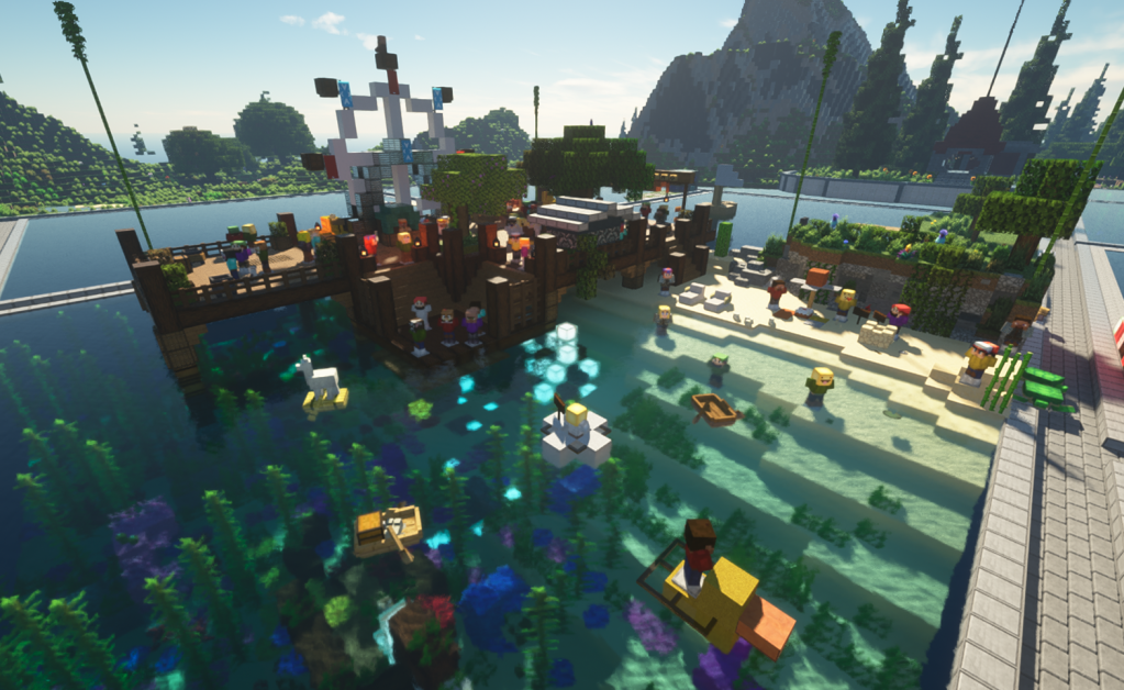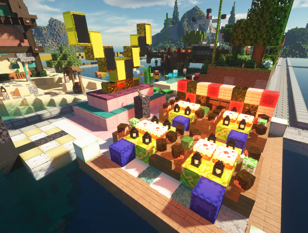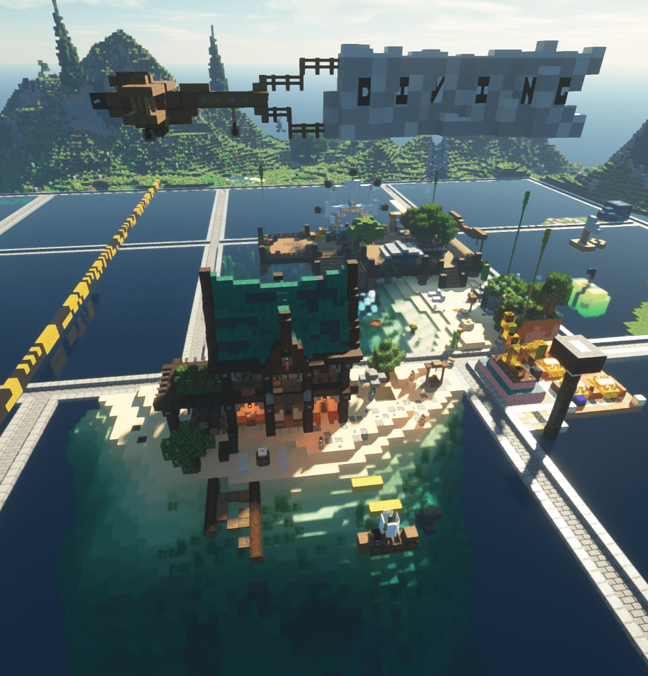 A newcomer to both LibraryCraft and the competition, qbio has created an incredibly detailed (and deep) medieval style waterfront. A highly detailed building on the water’s edge, followed by a diving reef underneath. There’s even a deep dark water section, complete with skull of something ancient and very large. Congrats qbio!