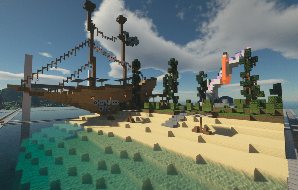Just getting in by one vote to get second place, Meowlicky has gone a more traditional waterfront look, with a big shipwreck cafe as the main attraction!