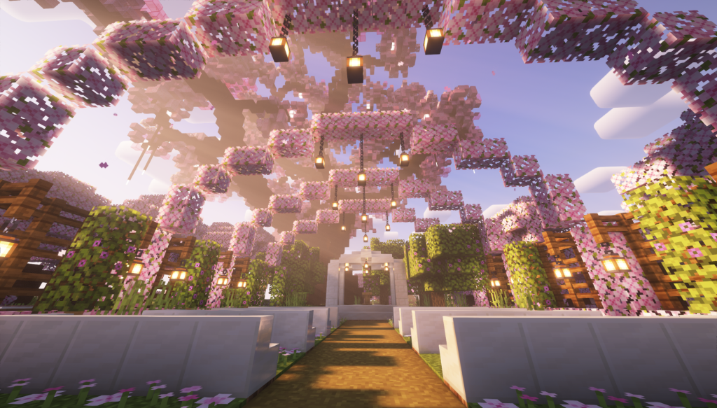 Until recently, I was only able to play on servers as my old laptop was dying. So I haven’t really played single player, but every time I play a new world on LibraryCraft, it usually goes the same way. I find a nice big cave to make my temporary base while I get better gear and look for a spot to put my actual base. In 1.20 I’m playing in a team (it is mostly just me, they never log on :<), so I found a nice cherry blossom hill and started out from there, building my base on top of it.