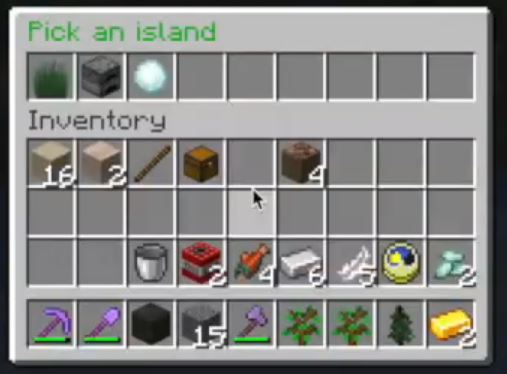 There are three island options, easy, a double island, and a hard island. If you’ve never played SkyBlock before, I’d suggest sticking with the easy or double one. If you choose the standard island, here’s what you get.