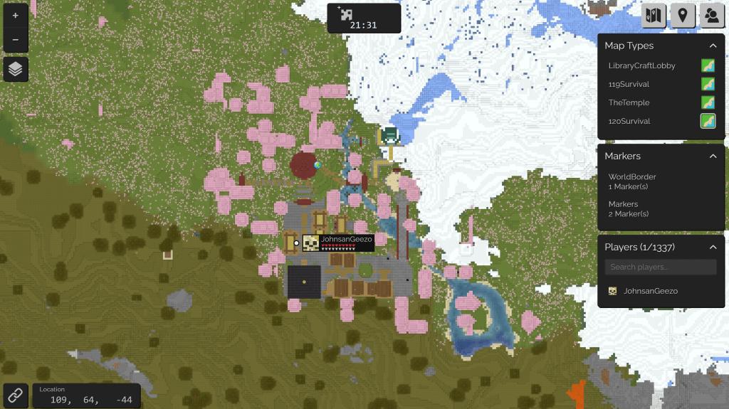 That’s right, the dynmap is back for 1.20 Survival! Now you can have a live overhead map of the Survival maps – that includes 1.20 and 1.19 Survival, Biblos’ Temple, and the Survival Lobby.
