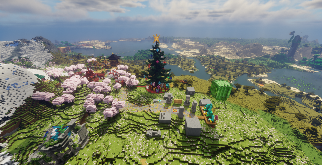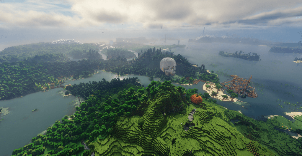 If you complete the Scavenger Hunt, not only will you get the golden shulker box full of goodies (check out the post linked above), but you’ll also get access to the newest Survival world to LibraryCraft, Skyland. Thanks to an incredible map by Flamedek_, Skyland is a 2k x 2k floating island world containing 13 different custom islands to explore and build on. There’s also a few other fun builds to find.
