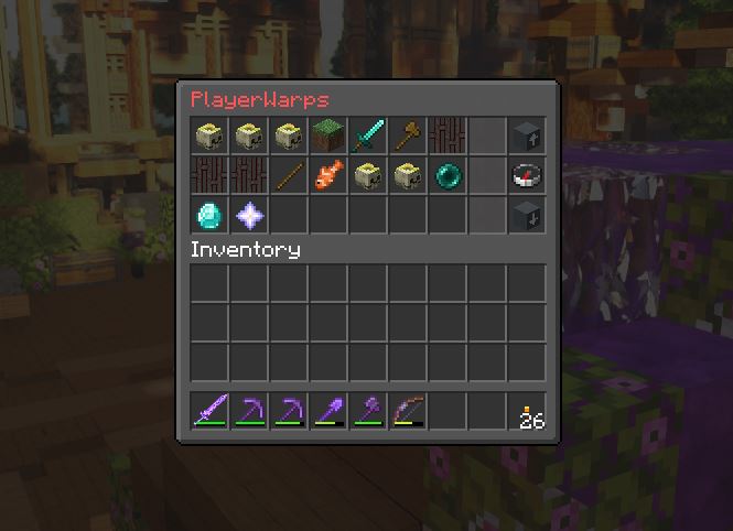 - Once there, enter /pwarps. A user interface will pop up.